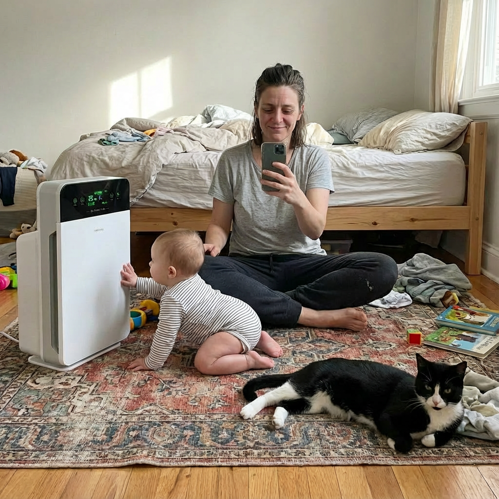 "Lifesaver with baby and cat! Pet dander was killing us. Works great, cat loves sitting next to it haha."